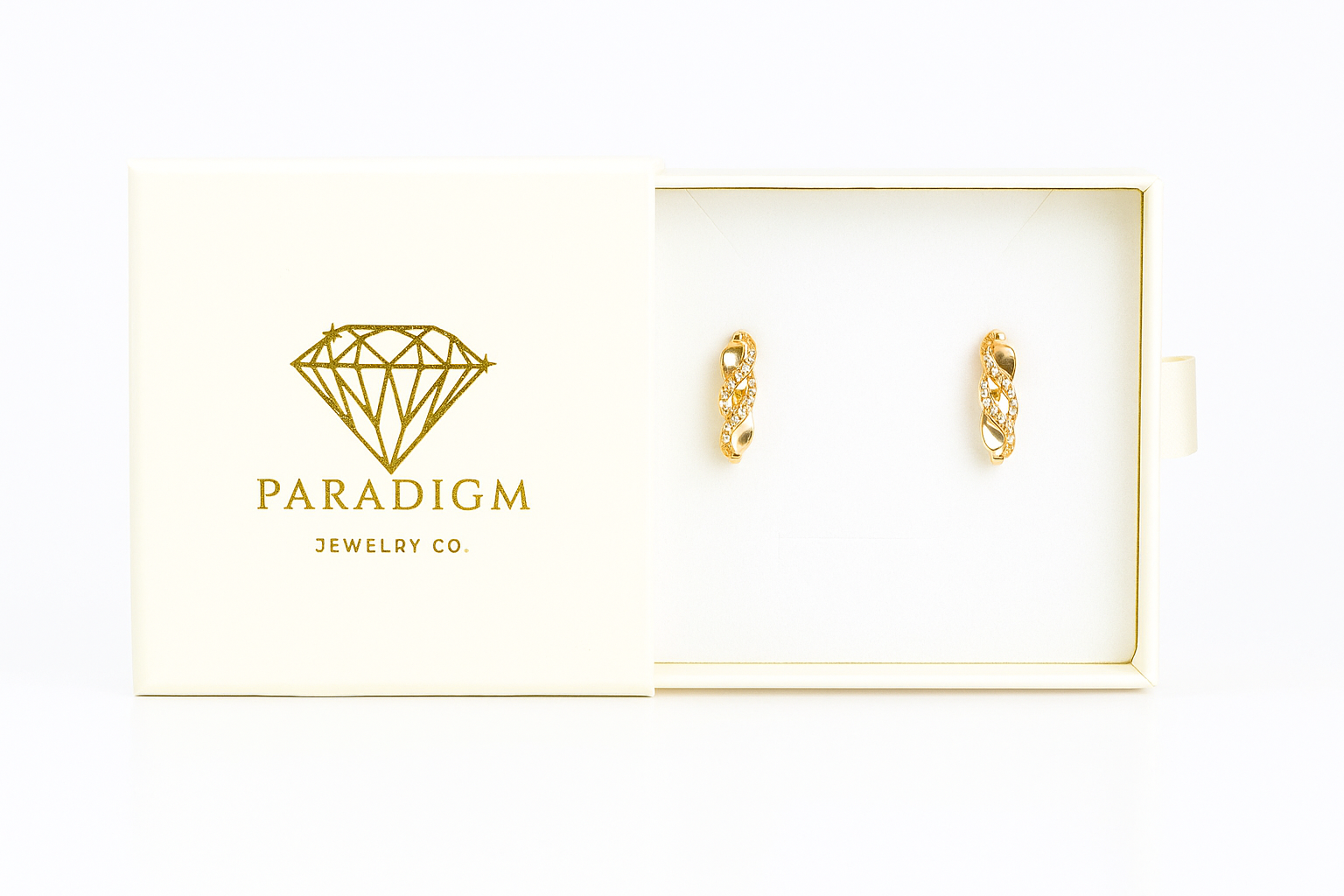 Interwoven Hoops – Gold Plated White Zircon Twisted Gold Earrings